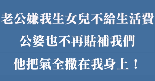 哈摟哈摟各位讀者~~我是有錢人這麼想小編Choco!今天要來說說關於「老公嫌我生女兒不給生活費,公婆也不再貼補我們,他把氣全撒在我身上!」,不知道大家有沒有興趣呢!一起來看看是怎麼樣的事吧!