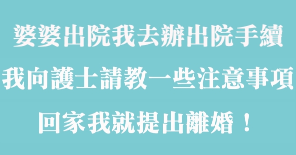 婆婆出院我去辦出院手續,我向護士請教一些注意事項,回家我就提出了離婚!