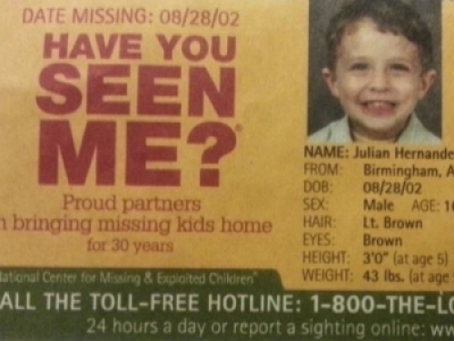 根據lifebuzz報導,有一名男子住在阿拉巴馬州,名叫朱利安,他在2年前為了申請大學才發現自己的名字和社會安全碼(類似臺灣的身份證,共9位數字)並不符合,於是他向校方求助,這才發現朱利安竟是13年前登記過的失蹤兒童!