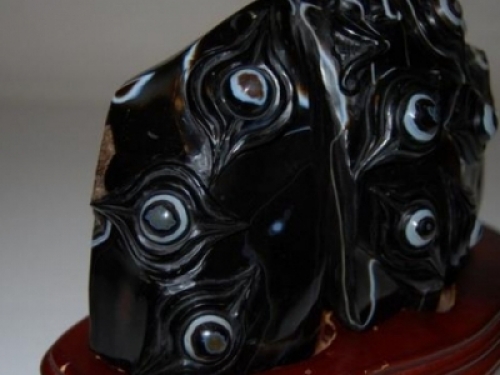 ▼接著他定睛一看,才發現石頭上布滿的奇異的花紋,就像有好幾個「眼睛」在盯著他看,這奇妙的花紋讓他打消了丟棄它的念頭。