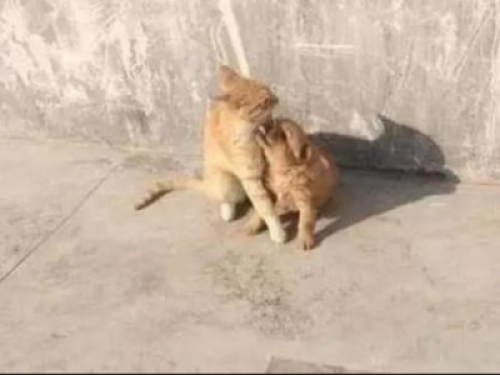 從此這隻橘貓就成為了小奶狗的新媽媽,小奶狗黏著“貓媽媽”寸步不離,橘貓也無微不至的照顧著這個小傢伙,幫它清潔身體,教它如何生存,如何與人相處。