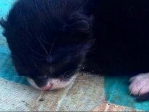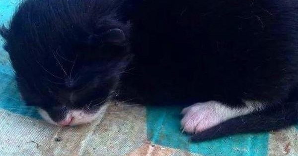 Kelli在門口的樓梯內側找到了這個小傢伙,當她抱起它的時候,小傢伙已經停止了叫聲。Kelli無法確定小貓是否還活著,就趕緊抱著它去了醫院。