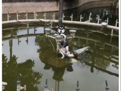 主人帶二哈散步,結果要回家時,卻到處找都找不到二哈...突然聽到水池中傳來哀嚎聲,過去一看,主人當場想挖地洞鑽進去...好丟臉!