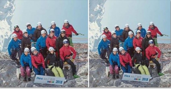 而這14位大學生勇敢的攀在阿爾卑斯山脈一處2,473公尺山峰,