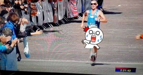 糗!馬拉鬆選手以為大家都在幫他加油,低頭一看「好康全被出賣」哭了,網友笑說:莫非是戰術!!