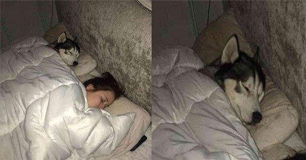 男主人半夜回到家,看到狗狗和女主人的睡姿,氣得他非要打狗狗一頓,網友全笑噴!
