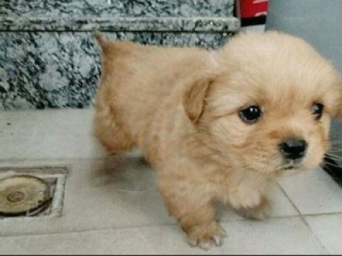 發現小傢夥很漂亮,黃色的絨毛,眼睛賊亮賊亮的,狗狗喝了一些奶,