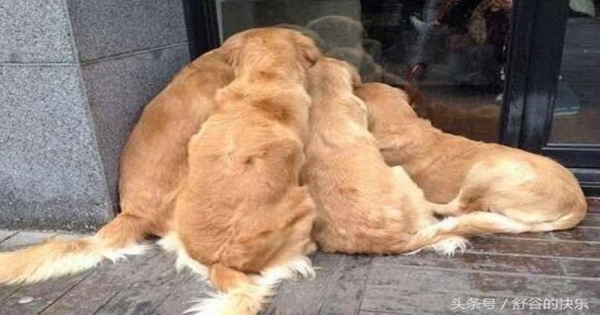 馬路壓得差不多了,寵主想進咖啡店喝杯咖啡,休息一會就回家,路過一家寵物店的時候,四隻大金毛居然齊刷刷的圍在玻璃窗外,似乎在盯著什麼看。寵主不解,上前去探個究竟,一看原來如此,寵物店內靠窗一角放著幾個竹籃,裡面正躺著一窩小奶貓,有的在睡覺,有的在搗蛋非常可愛。