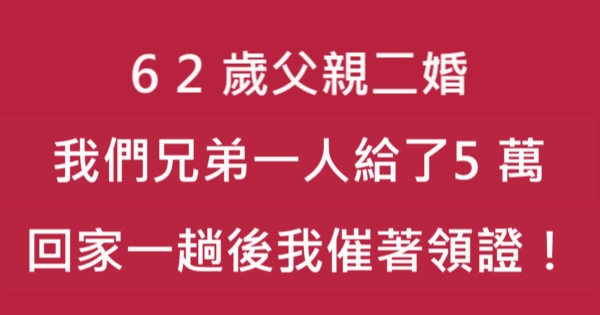 哈摟哈摟各位讀者~~我是有錢人這麼想小編Pineapple!今天要來說說關於「62歲父親二婚,我們兄弟一人給了5萬,回家一趟後我催著領證!」,不知道大家有沒有興趣呢!一起來看看是怎麼樣的事吧!
