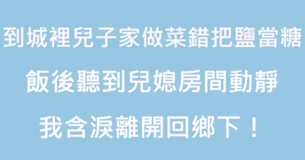 各位讀者安安阿~~我是有錢人這麼想小編Choco!今天要來說說關於「到城裡兒子家做菜錯把鹽當糖,飯後聽到兒媳房間動靜,我含淚離開回鄉下!」,不知道大家有沒有興趣呢!一起來看看吧!