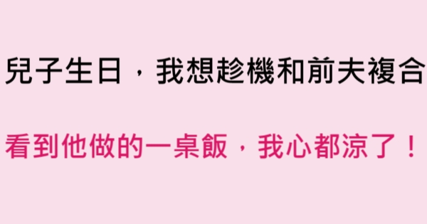 大家好,我是 Choco 今天來跟你說說 兒子生日,我想趁機和前夫複合,看到他做的一桌飯,我心都涼了!吧!讓我們來看看!