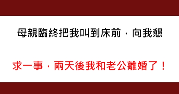 母親臨終把我叫到床前,向我懇求一事,兩天以後我和老公離婚了!