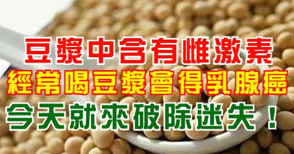 豆漿中含有雌激素,經常喝豆漿會得乳腺癌,今天就來破除迷失!!!