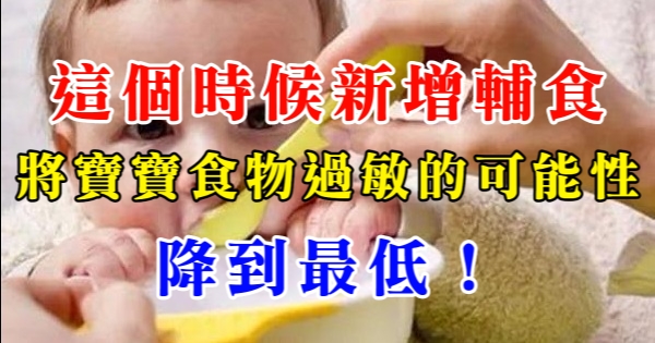 這個時候新增輔食,將寶寶食物過敏的可能性,降到最低!!