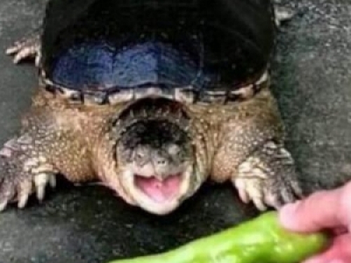 這天,喪心病狂的主人又來喂鱷龜了,以往帶的是好吃的東西,但今天,主人居然帶來了青辣椒,超辣的那種辣椒。