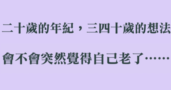二十歲的年紀,三四十歲的想法,會不會突然覺得自己老了!!