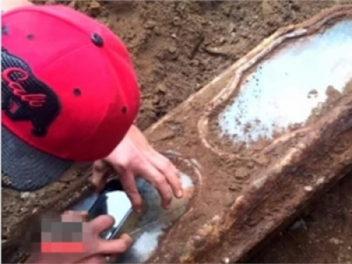 最近美國三藩市有群工人在挖地時,意外挖到一座迷你金屬棺木,