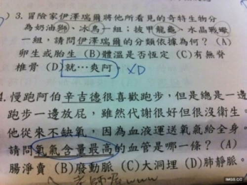 遇到這樣的考卷一定會憋笑憋出內傷 網友:這是要怎樣作答啦!