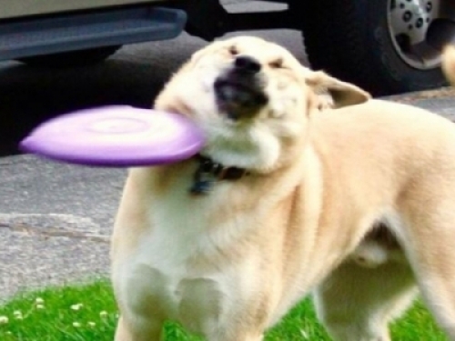 還有些狗狗,能預判好飛盤落下來的位置,但實在是無法控製自己的嘴巴準確的咬到目標,於是接飛盤遊戲就硬是被玩成了頂飛盤的遊戲!