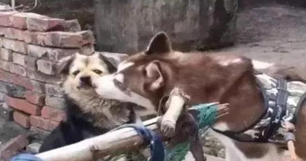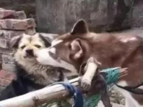 一隻哈士奇在外面遇到了一隻中華田園犬,這隻哈士奇好像很喜歡這隻田園犬,二哈就主動上去調戲田園犬了,真是流氓狗,二哈直接是強吻了田園犬了,看田園犬的樣子就像個受氣的小媳婦樣……