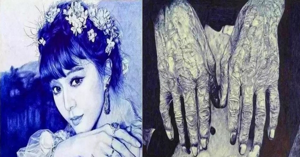 這雙用圓珠筆畫出來的手,是你們滄桑而真實,簡直不敢相信是用一隻圓珠筆畫出來的,任意一個人看到後都會說它是大師之作,誰會真的認為這是一個還在上學,被老師認定「遊手好閒」的少年畫的。