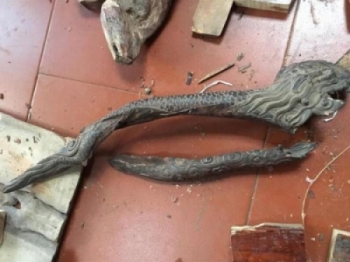 雖然木頭的雕刻十分粗糙,但是也大致可以看出木頭被雕成了龍的造型,而孩子也確實很喜歡這個玩具。