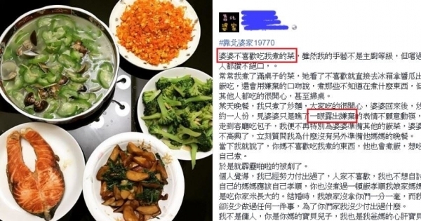 沒想到這名女網友的先生回到家後看到她沒有替媽媽準備其他飯菜,立刻就大發雷霆非常的震怒的質問:「妳為什麼沒有準備我媽愛吃的東西?」