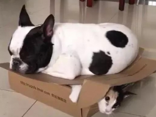 網友家就養了這樣兩個可愛的小傢伙,它們的日常生活,總是無意間做出有趣的事情。因為貓咪喜歡待在盒子裡,這是大家都知道的,所以,在網友換下了商品盒後,還沒來的急丟掉,就給自家的貓咪霸佔了,它鑽了進去,開始多在裡面消磨時光,誰知道,一個不小心就睡著了,忘記了時間。巧的是,今天 ,這盒子不僅貓咪看上了,連狗子也想著湊個熱鬧。於是,在看到地上的盒子後,狗子就果斷上去,趴在了盒子上面。