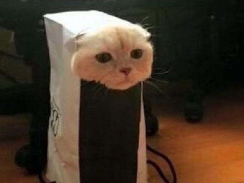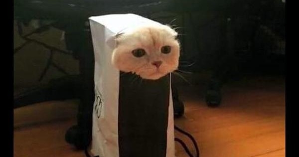 結果等到網友進到了臥室,看見了讓他啼笑皆非的畫面!原來這隻貓咪是鑽到了一個袋子裡,不知怎麼了袋子就翻了過來,然後貓咪正好就只露出個貓頭出來,好像頭部被卡住了,它正愁著如何從裡面出來呢!這迷離的眼神夠我笑一天了!