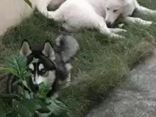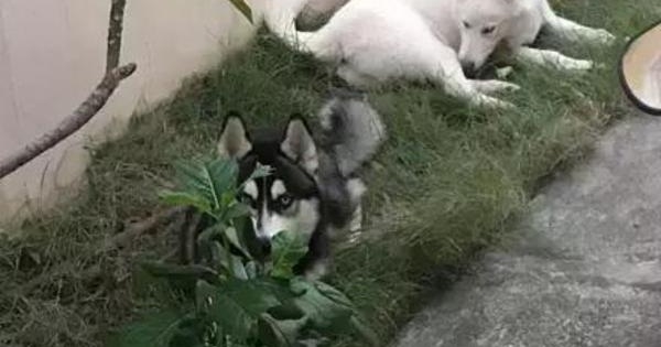 感覺到狗狗們的不高興,回頭看了一眼,發現二哈整趴在草後面,直勾勾的頂著他看,那眼神老犀利了。