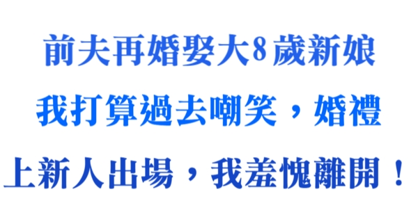 前夫再婚娶大8歲新娘,我過去打算嘲笑,婚禮上新人出場,我羞愧離開!