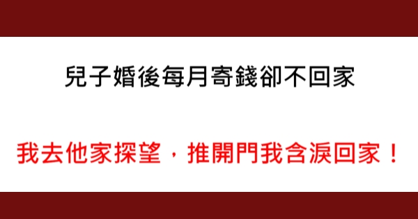 大家好,我是 Choco 今天來跟你說說 兒子婚後每月寄錢卻不回家,我去他家探望,推開門我含淚回家!吧!讓我們來看看!