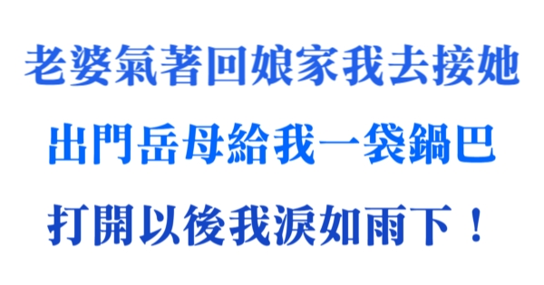 大家好,我是有錢人這麼想小編Choco!今天我們一起來看看「老婆氣著回娘家我去接她,出門岳母給我一袋鍋巴,打開以後我淚如雨下!」!背後到底藏著什麼秘密吧!