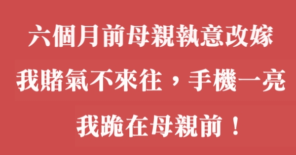 六個月前母親執意改嫁,我賭氣不來往,手機一亮,我跪在母親面前!