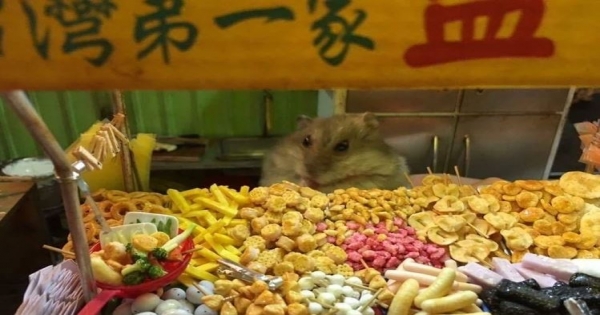 就有網友在網路上分享有一位JINJIN網友,利用各種逼真材料,做出了一個鹽酥雞攤!還用他養的寵物鼠放進作品裡當比例尺順便溜答,照片裡的小倉鼠沒仔細看真的以為是生化汙染的可怕物種啊!