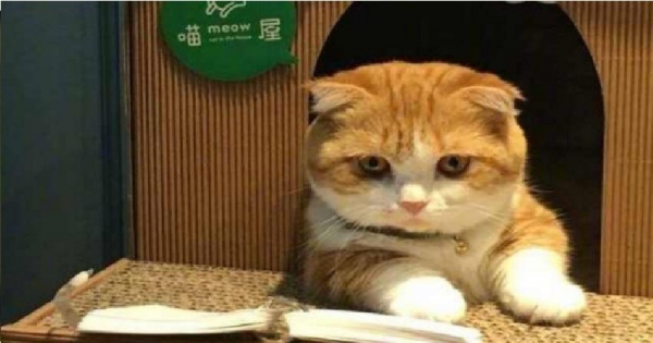 貓咪目不轉睛伏案看書,主人看了覺得困惑不已,仔細一看忍不住笑噴 !