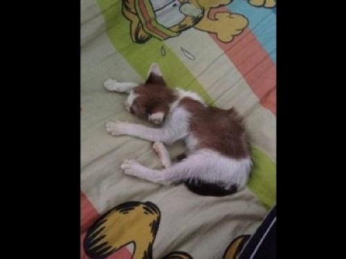 網友收養了一隻小流浪貓,當初第一眼看到它的時候,網友就被它的模樣給深深的感觸到了,這貓實在太瘦了,全身的骨頭都快印在了皮上面,而且還一副半死不活的樣子,要不是看著它的肚皮在一上一下,網友真以為這貓已經死了。後來網友看著這貓實在是太可憐了,便決定將其抱回去。