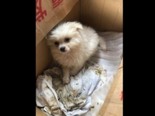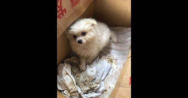 在路上看到這隻渾身髒兮兮的小博美蜷身在紙箱,女孩看到當場大哭,帶回家照顧後馬上被「這模樣」給被逗笑了XD