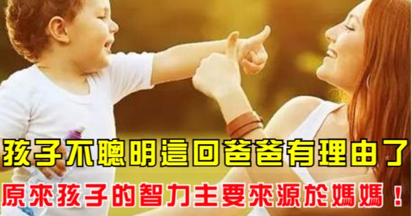 哈摟哈摟親愛的大家~~我是小寶貝媽媽經小編葡萄!今天要來說說關「孩子不聰明這回爸爸有理由了,原來孩子的智力主要來源於媽媽!」的事件!讓我們一起來看看吧!