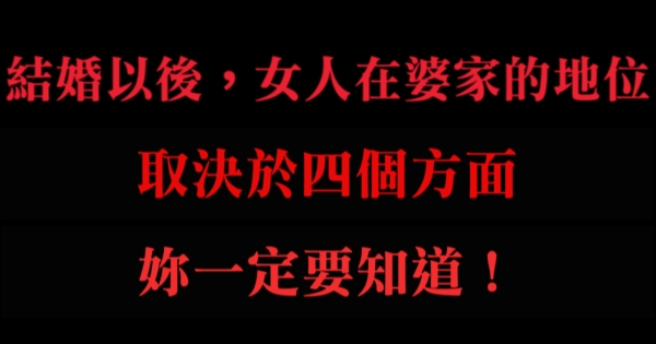 大家好,我是有錢人這麼想小編CA!今天要來說說關於「結婚以後,女人在婆家的地位,取決於四個方面,妳一定要知道!」的事!不知道大家對於這個有多了解呢?一起來看看吧!