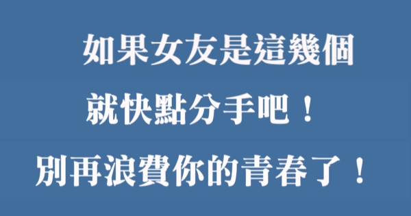 如果女友是這幾個,就快點分手吧!別再浪費你的青春了,早發現可以少受點罪!!