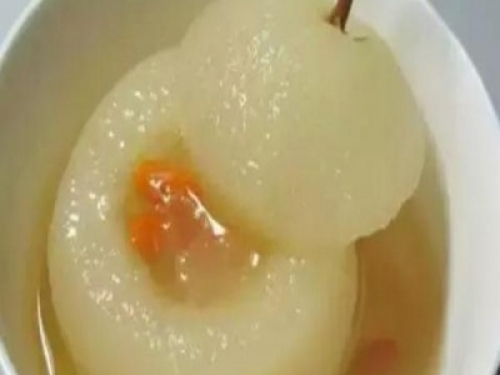 新鮮的梨去皮,剖開去核,加入適量冰糖,放入鍋中隔水蒸軟即可食用。