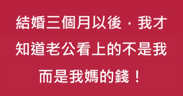 我是有錢人這麼想小編Choco!今天要來說說關於「結婚三個月以後,我才知道老公看上的不是我,而是我媽的錢!」!讓我們直接來看看吧!
