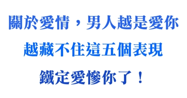 大家好,我是CA 今天來跟你說說 關於愛情,男人越是愛你,越藏不住這五個表現,鐵定愛慘你了!吧!