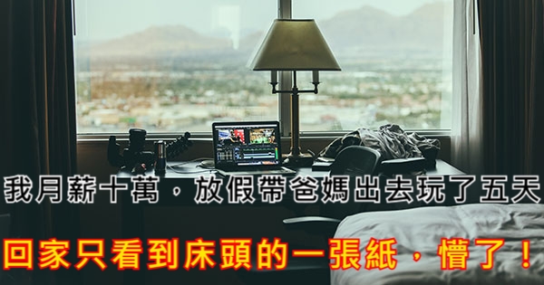 我月薪十萬,放假帶爸媽出去玩了五天,回家看到床頭一張紙,懵了!