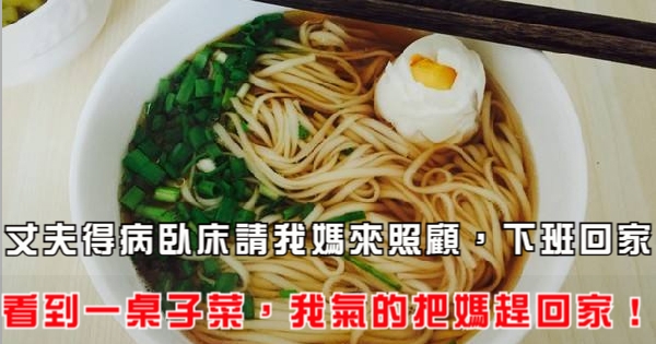 丈夫得病臥床請我媽來照顧,下班回家看到一桌子的菜,我氣的把媽趕回家!