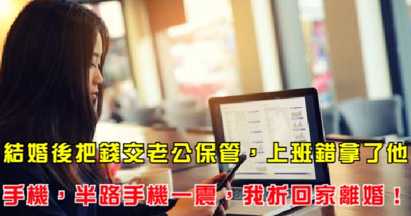 結婚後把錢交老公保管,上班錯拿他手機,半路上手機一震,我折回家離婚!