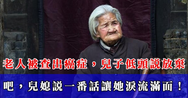 大家好,我是有錢人這麼想小編Choco!今天我們一起來看看「老人被查出癌症,兒子低頭說放棄吧,兒媳說一番話讓她淚流滿面!」!背後到底藏著什麼秘密吧!