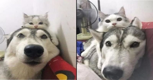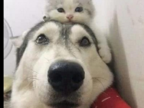 把哈士奇和貓咪一起養,畫面感是怎麼樣的呢?要知道不論是二哈的蠢萌還是貓咪的神經萌,都是有傳染性的!小時候的貓咪就趴在二哈的腦袋上,可是當貓咪長大了,還是喜歡趴在二哈的腦袋上!