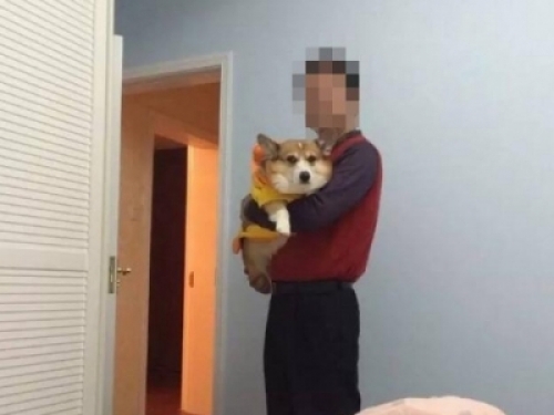 老爸抱著我的狗狗,教訓我再賴床下去就嫁不出去了.......無語~